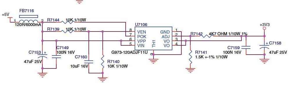 Tensiunea de St.By, este cam 1,2V, led-ul de St.By este stins, uneori daca se lasa deconectat de la retea mai mult timp, la reconectare se aprinde led-ul, dupa care tv-ul poate fi pornit si functioneaza normal.Cauza este integratul U7106, care nu "lucreaza" corect.Solutia este montarea unui cond. de 100nF in paralel pe R7142(respectiv pinii2~3 ai integratului).Am testat-o pe mai multe tv-uri de acest tip si merge perfect.Integratul este plasat fizic, in partea dreapta-jos a main board-ului.Asta se intampla cand faci un integrat-sursa de 4A in capsula SOIC 8(observatia apartine colegului "TV1", de pe alt forum).Succes!!!