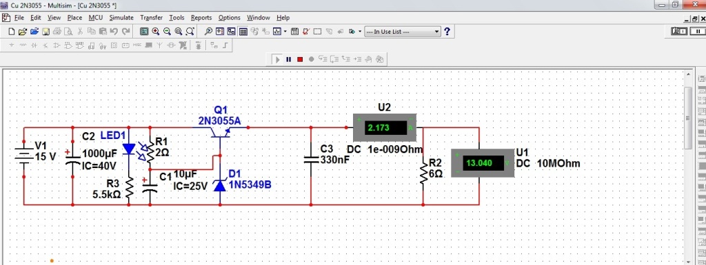 Am nevoie sa alimentez un laptop (Asus eeePc) de la bricheta masinii (alimentatorul original al laptopuui are iesire de 12V 3 A). Am verificat si dupa cum banuiam cu un cablu direct de la bricheta nu functioneaza decat atunci cand am motorul oprit (12V la bricheta) si nu mai functioneaza cand pornesc motorul (14,5 V, laptopul intra in protectie). Drept urmare am contruit un montaj DC/DC simplu cu parametri relativ modesti (nici nu imi trebuie mai mult) si asa imi functioneaza doar ca in circa 10 minute se incinge foarte tare. Componenetele in principu ar trebui sa reziste la disiparea termica care apare pa tensiunile si curentii care strabat elementele de circuit (Q1 2N3055 care suport 15A, dioda Zener e de 6W). Are cineva alta solutie? In comert nu am gasit alimentatoare (fie si cu iesiri multiple, desi nu le agreez) care sa se alimenteze de la 12/14,5 V cc si sa aiba o iesire de 12V 3A? Atasez si schema montajului poate ceva mi-a scapat desi simulatorul "zice" ca ar trebui functioneaza fara probleme (inclusiv disiparea termica).
