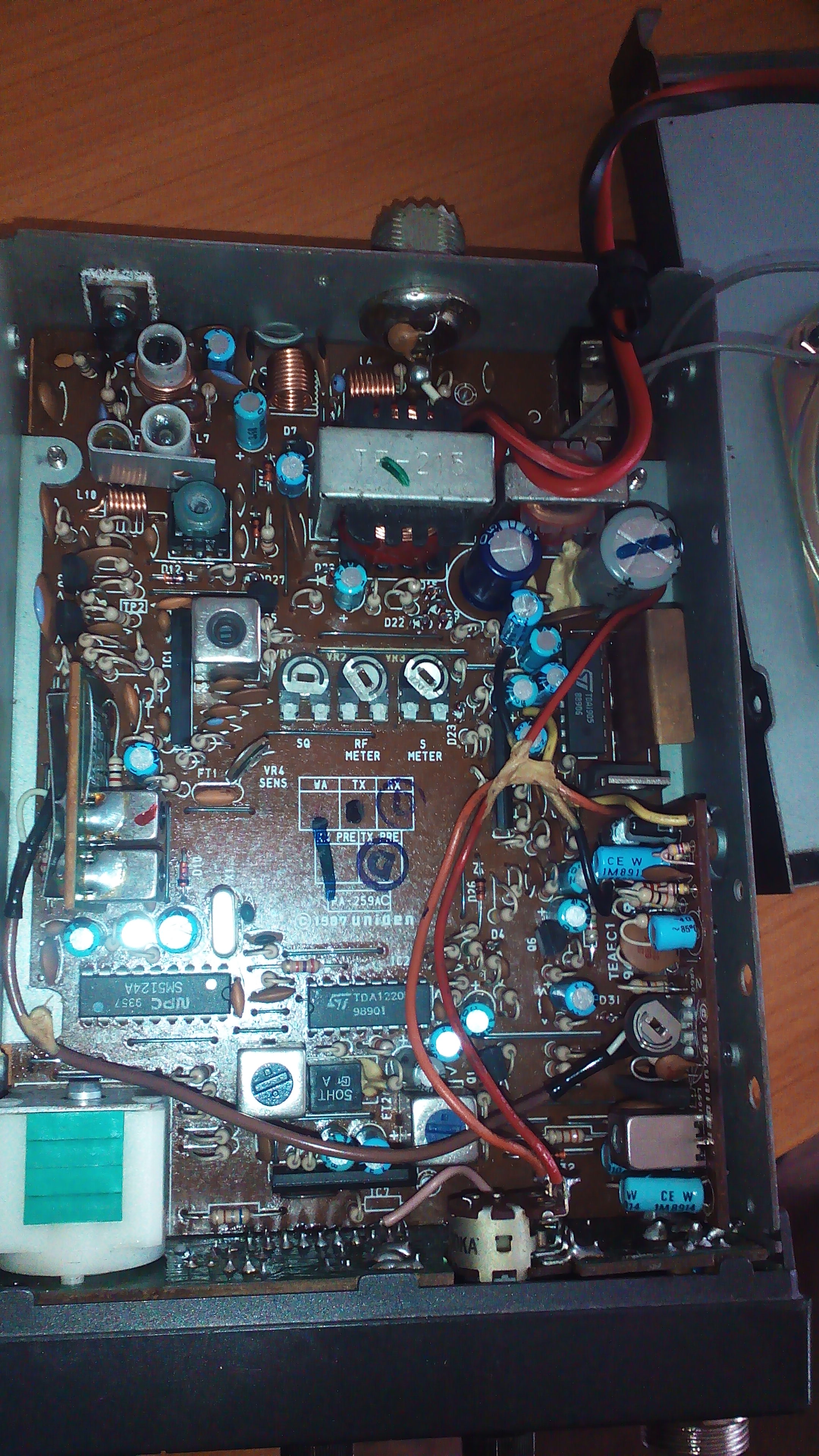 Va mai cer ajutorul inca odata in legatura cu aceasta statie. Am reusit sa adaptez microfonul dar nu pot transmite nimic. Cand vreau sa transmit imi arata pe statie ca transmite dar nu ma aude nimeni. Eu aud foarte slab si cu mult bazait pe altii care sunt aproape. Am masurat consumul la statie si consuma undeva la 0.6 amperi in receptie si 0.8 amperi in transmisie. Am inlocuit niste piese care am observat ca se incalzesc foarte tare dar este acelasi lucru (am atasat si poze cu piesele inlocuite, sunt incercuite cu rosu). Atasez poze cu statia completa si un filmulet cu ea in proba. Daca stie cineva ce pot sa mai verific eu va rog sa imi spuneti, nu ma prea pricep la statii dar am ceva habar de electronica. Multumesc