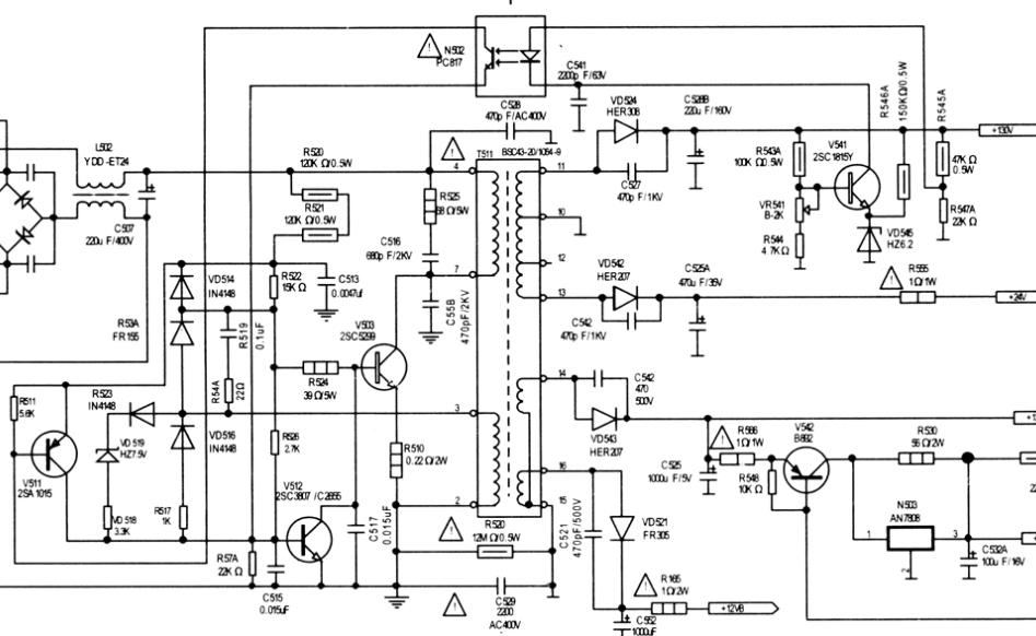 Tranzistorul V511 este cauza multor ravagii in tv-urile astea....trebuie pus A1013 chiar daca este bun. Greu de gasit schema exacta la chinezariile astea.