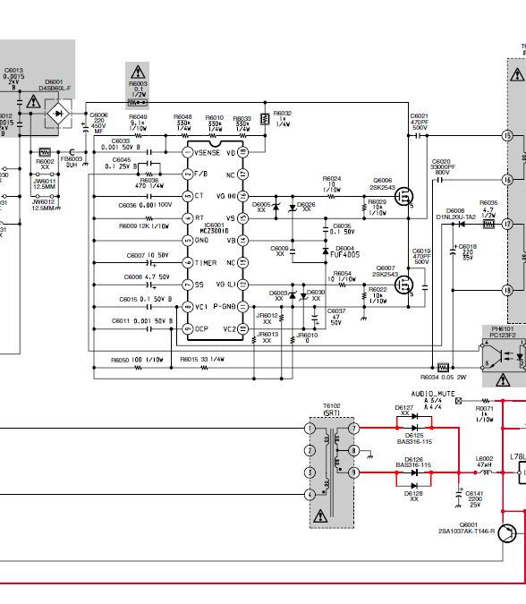 Prefinalul linii se alimenteaza din bara de 135v , prin trei rez , 470 , 470 , 560ohmi , si nu are niciun cond . Prefinalul este un IRF614 . Impulsurile H ies din proc la pinul 24 printro rez de 220ohmi si nu are niciun elco pina in grila IRF-ului .Tocmai am schimbat finalul cu unul nou (cumparat) , si tot nu vrea .