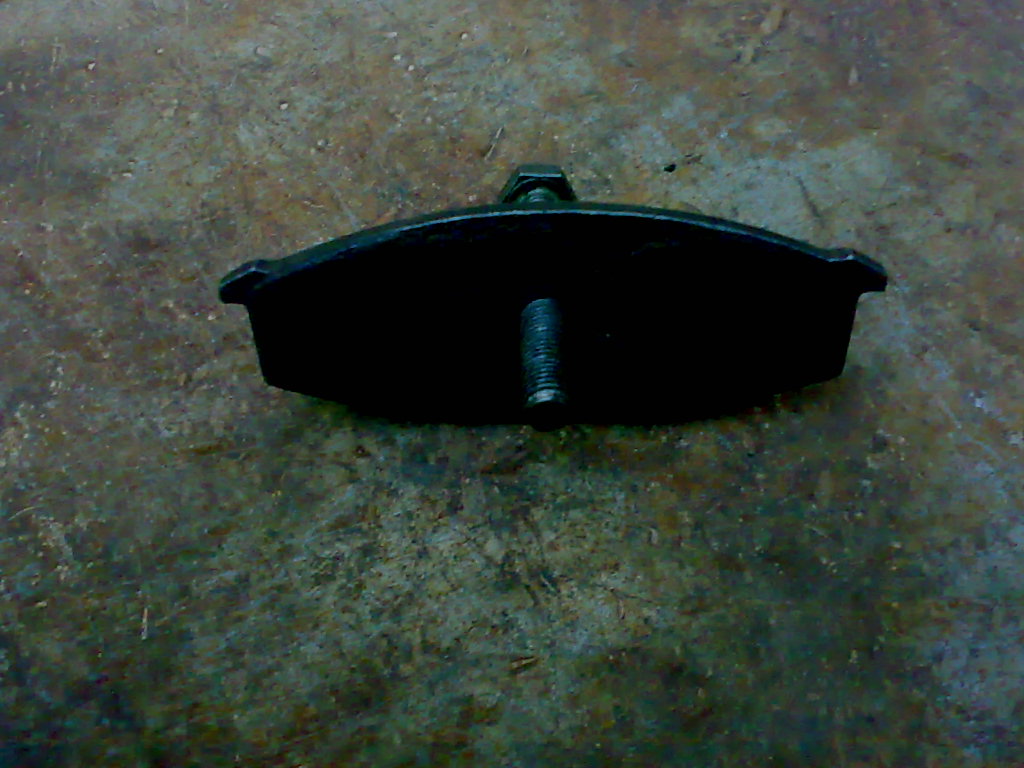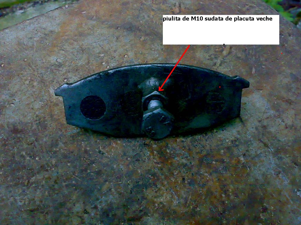 Luam o placuta de frana veche,o curatam de ferodoul ramas pe ea si in centru ei dam o gaura cu bormasina cu un spiral de 10 mm,operatia se face neaparat fixand placuta intr-o menghina deoarece fiind un spiral mai mare,ne-o poate smulge din mana si pot surveni multe accidente.Se cumpara din comert un surub de M10 filetat pana la capat care sa aiba o lungime de vreo 10 cm si o piulita pereche cu acest surub,dupa care piulita se sudeaza perfect aliniata pe gaura care am dat-o in placuta si apoi surubul se infileteaza in centrul acesteia.