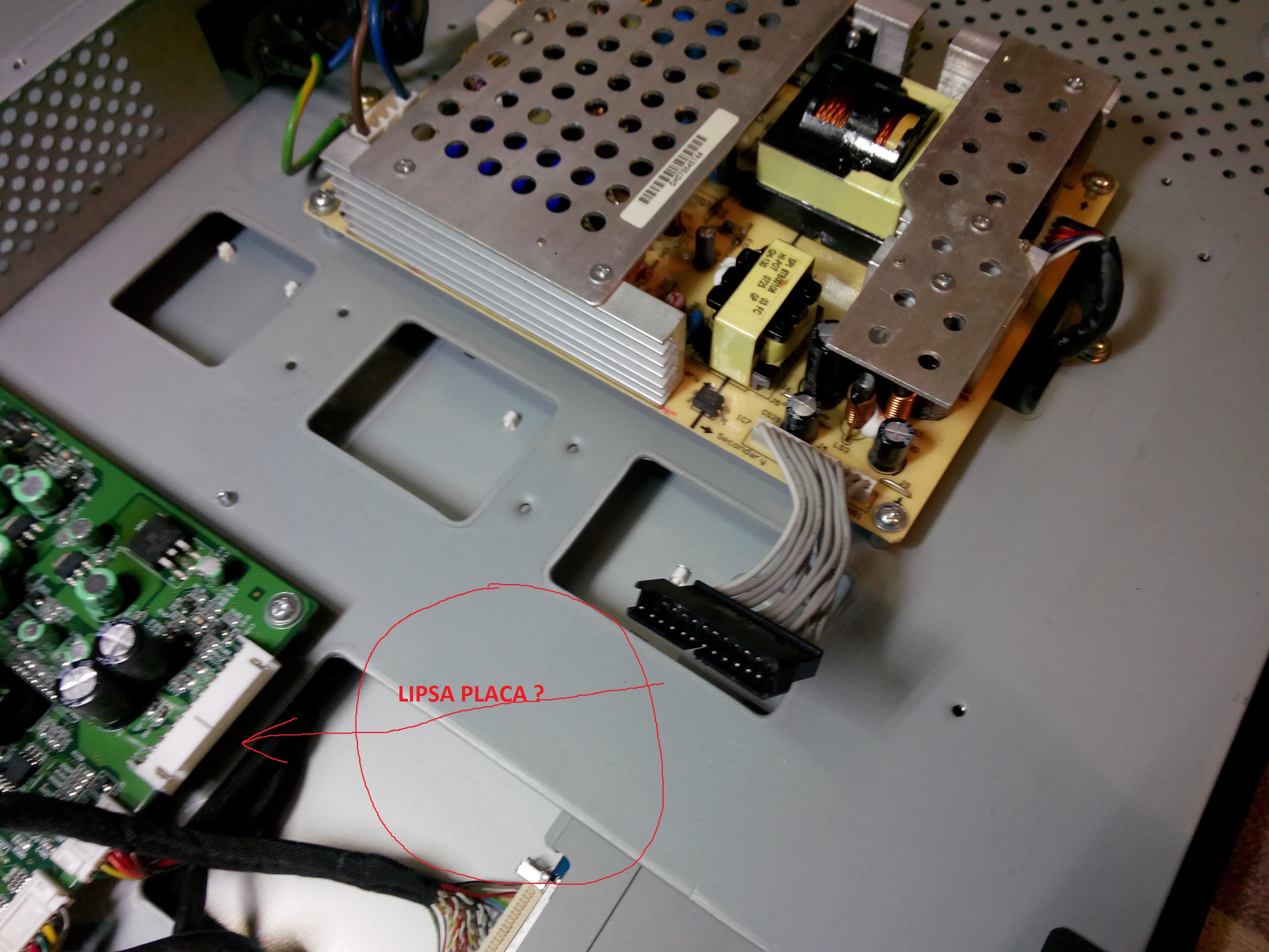 Am primit un tv LCD HANNspree type T23B care are o placa lipsa si nu stiu care daca ma poate ajuta cineva, postez citeva imagini ca sa va dati seama ce lipseste.