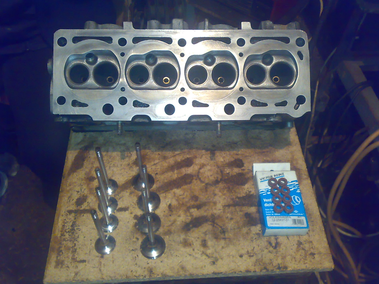 Am pasuit fiecare supapa la locul ei in chiulasa dupa care am schimbat simeringurile si am remontat totul la loc.