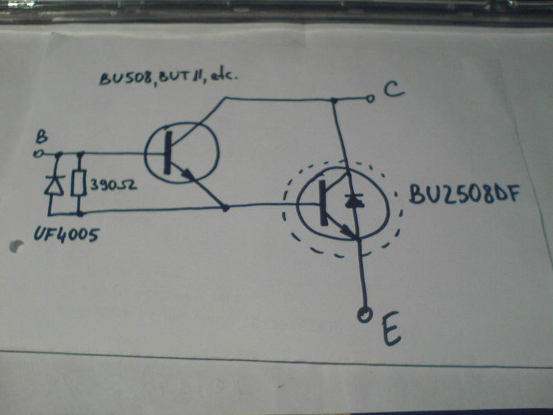 acel condensator lam inlocuit deja prefinalu la schimbat fara succes am sa schimb si trafu, schema aia de inlocuire bu808 da rezultate so fac si eu ca nu mai am acest tip de tranzistor ca am prajit 3 bucati in asta